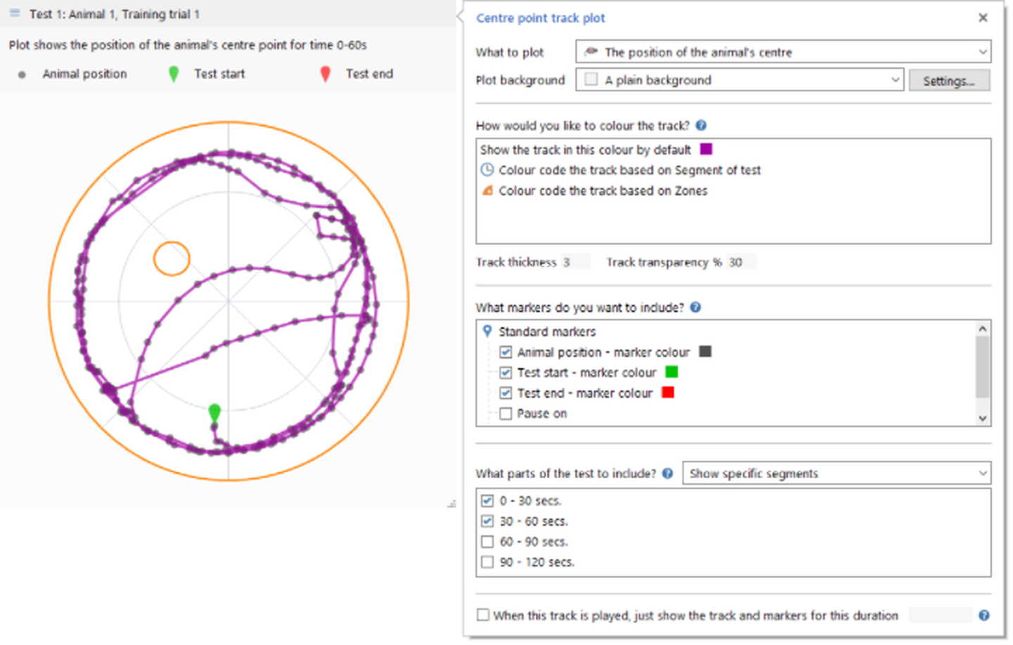 ANY-maze Help > The ANY-maze reference > The Tests page > The Experiment management reports > The Test track plot reports > Working with Track plots Working with Track plots