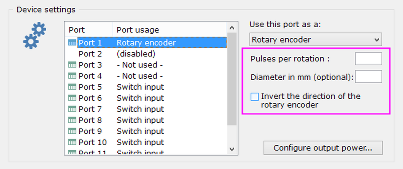 Figure 2. The rotary encoder port options.