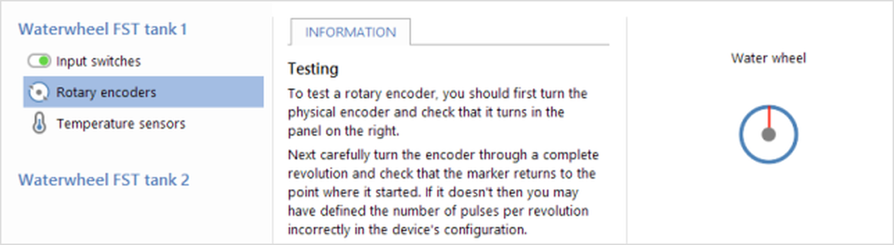 | | • | The tank will 'open' to show a list of its ports. Select the entry for Rotary encoders. | |