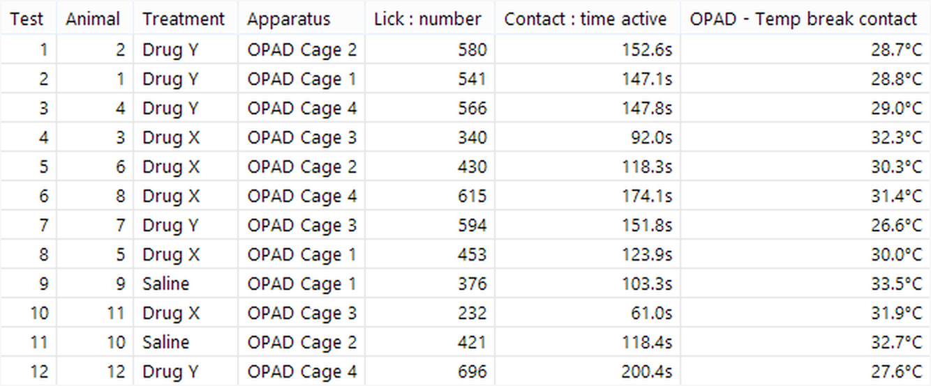 ANY-maze Help > I/O devices supported by ANY-maze > Test equipment designed specifically for ANY-maze > The Orofacial pain assessment device (OPAD) cage > Performing experiments with the OPAD cage > Analysing the results of OPAD experiments Analysing the results of OPAD experiments