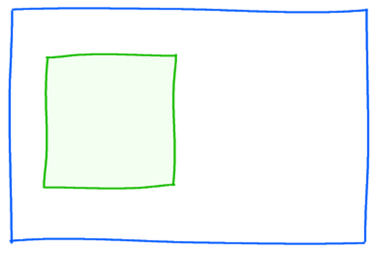 Figure 1. A 640x480 pixel video picture (the blue outline) with a 40cm x 40cm open field in it (the green shaded area).