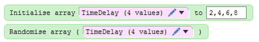 Figure 2. Setting up the array to contain four values. The values are initialised and then randomised, so they're in a different order.