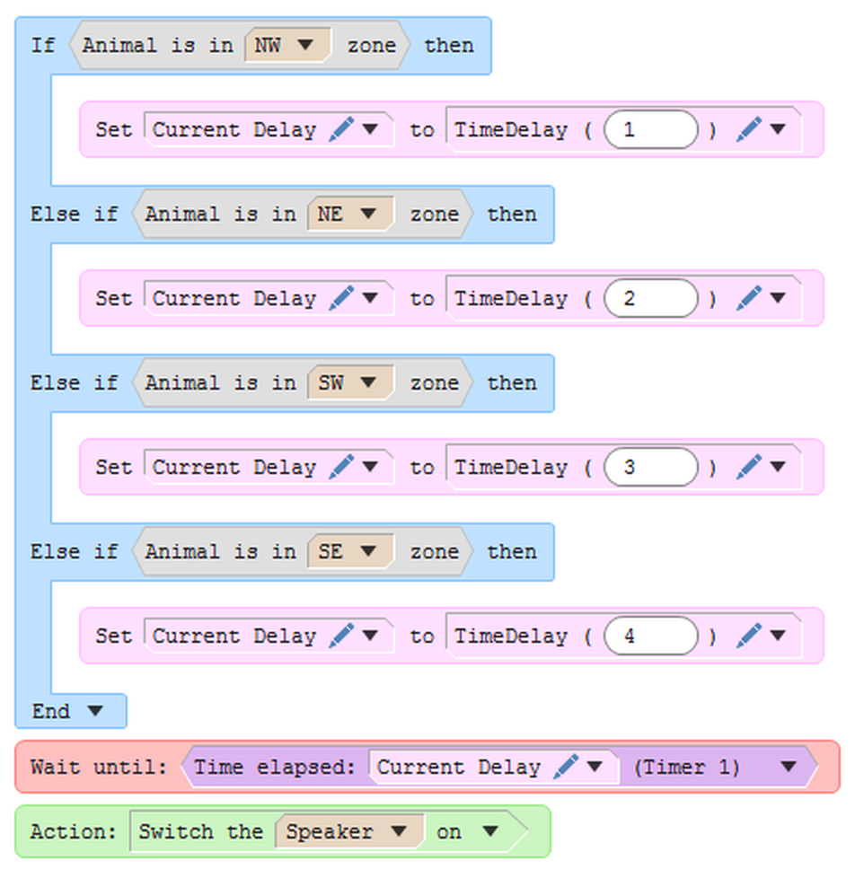 Figure 3. A section of the procedure that uses the array variable from figure 1. Note that the part of the procedure that waits for the animal to enter one of the four zones has been omitted.
