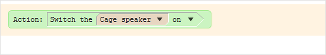 Figure 2. This one-statement procedure will start the 'Cage speaker' playing before the test starts (because statements in the orange-shaded area are performed as soon as the test is ready)